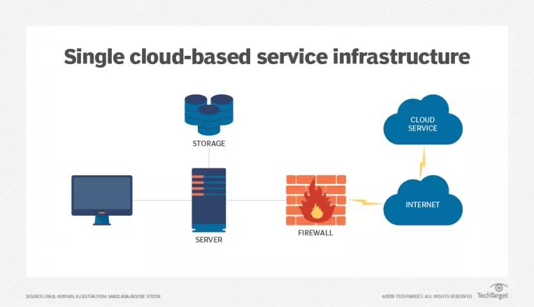 圖1展現了一種典型技術配置,其中本地存儲系統僅使用一種基于云的服務來支持應用程序。
