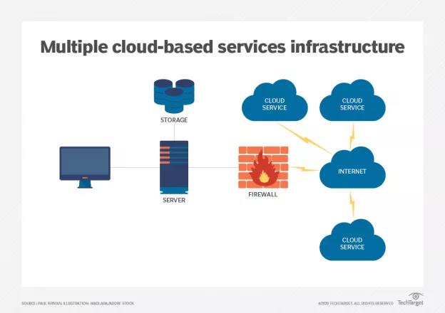 相比之下,讓我們研究一個更加關注云的環境,在該環境中,企業利用來自多個基于云的資源。圖2展現了一種配置,該配置具有較少的本地存儲和更多的基于云的資源。