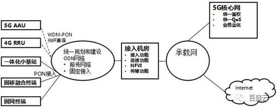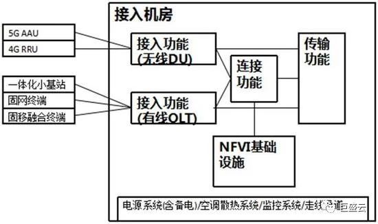 接入機(jī)房是距離用戶最近的通信機(jī)房,是光接入局端設(shè)備OLT設(shè)備位置所在,典型寬帶用戶覆蓋范圍3~5km。在4G時(shí)代,BBU池化,基于就近原則,運(yùn)營商也在接入機(jī)房部署了大量BBU設(shè)備。4G時(shí)代有線、無線設(shè)備已經(jīng)實(shí)現(xiàn)共機(jī)房,但無論是業(yè)務(wù)還是網(wǎng)絡(luò),有線和無線都互相獨(dú)立。